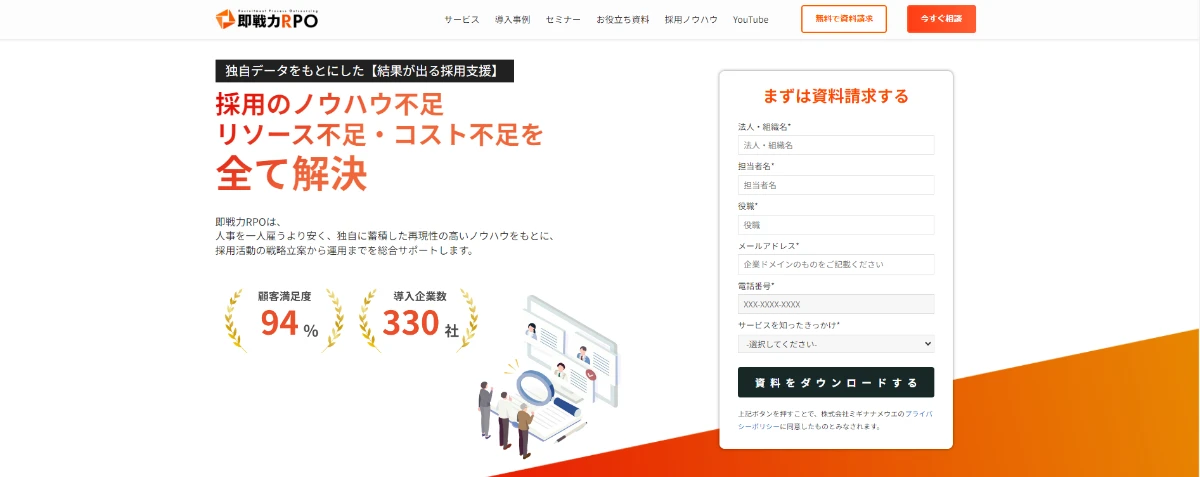 即戦力RPOは、独自で蓄積した20万件以上のデータやノウハウをもとに、採用活動における戦略立案から媒体運用、内製化サポートなどを行う採用代行サービスです。完全オーダーメイドのプランなので、自社のニーズに合わせてコスパ良くプロのサポートを受けることができます。